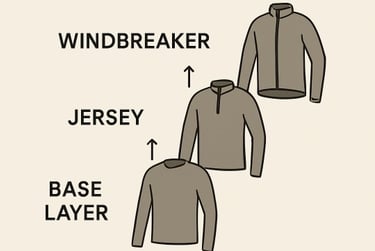 Breathable Base Layer: A technical (non-cotton) shirt close to the body. Its function is to wick away sweat to keep you dry and prevent you from getting cold on descents or when the wind stops.
