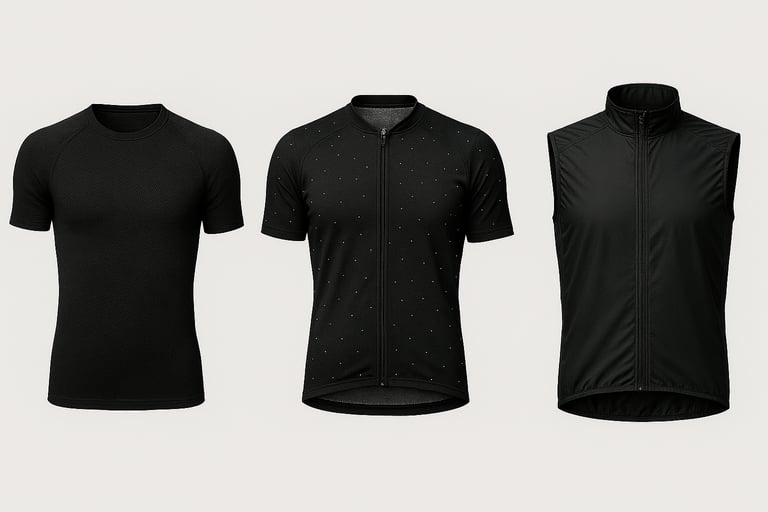 Cycling Jersey: The star garment. A good short-sleeved jersey is perfect for most days. Its back pockets are ideal for storing a gel, your phone, or a windbreaker.